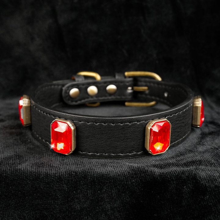 Collar de perro de cuero vegano negro hecho a mano con grandes detalles de cristal para perros medianos y grandes